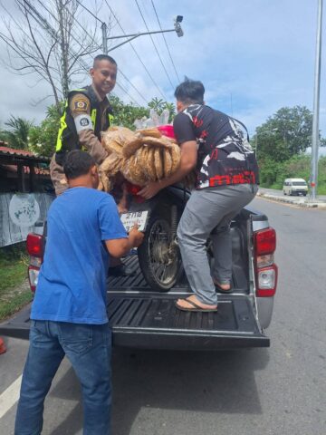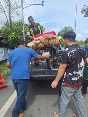 ว.4 ช่วยเหลือประชาชนรถจักรยานยนต์ยางแตกไม่สามารถเดินทางไปต่อได้บริเวณถนนเทศบาล 1 ตรงแยกบัวจ๋า ได้ช่วยยกขึ้นรถยนต์จราจรนำส่งร้านปะยาง