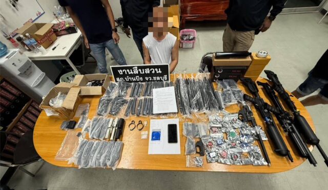 สภ.บ้านบึง บุกค้น-รวบผู้ต้องหาพร้อมยาเสพติดและอาวุธปืน!